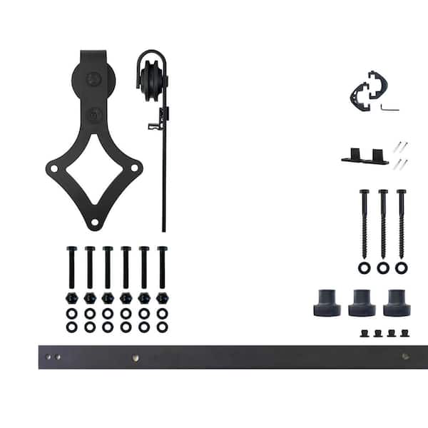 4.5 ft./54 in. Black Rustic Non-Bypass Sliding Barn Door Hardware Kit Diamond Design Roller for Single Door