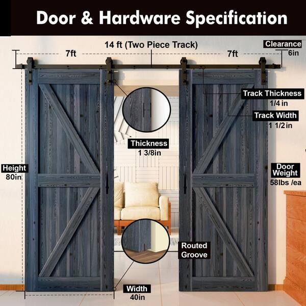 40 in. x 80 in. 5 in. 1 Design Navy Double Pine Wood Interior Sliding Barn Door Hardware Kit, Non-Bypass