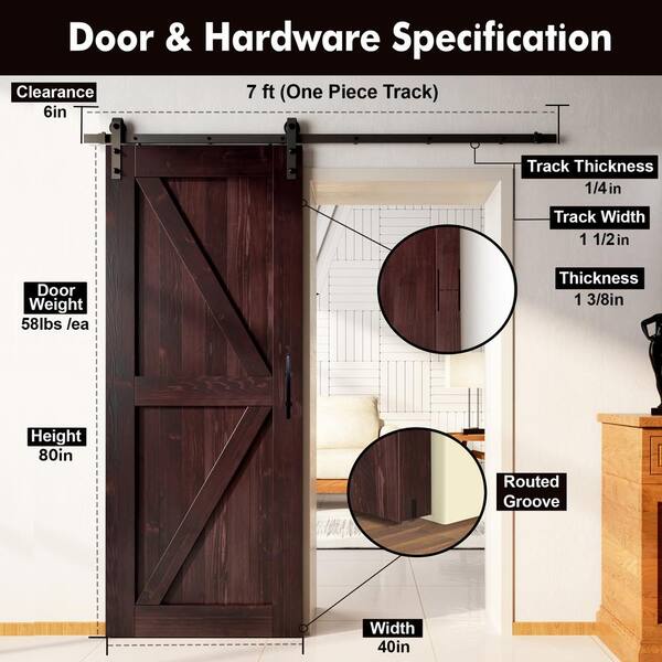 40 in. x 80 in. 5-in-1 Design Red Mahogany Solid Pine Wood Interior Sliding Barn Door with Hardware Kit, Non-Bypass