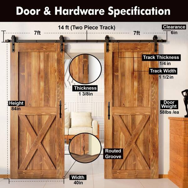 40 in. x 84 in. X-Frame Early American Double Pine Wood Interior Sliding Barn Door with Hardware Kit Non-Bypass