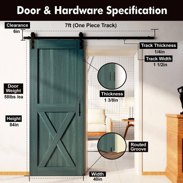40 in. x 84 in. X-Frame Royal Pine Solid Pine Wood Interior Sliding Barn Door with Hardware Kit, Non-Bypass