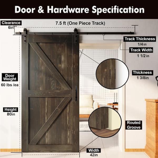 42 in. x 80 in. 5-in-1 Design Ebony Solid Pine Wood Interior Sliding Barn Door with Hardware Kit, Non-Bypass