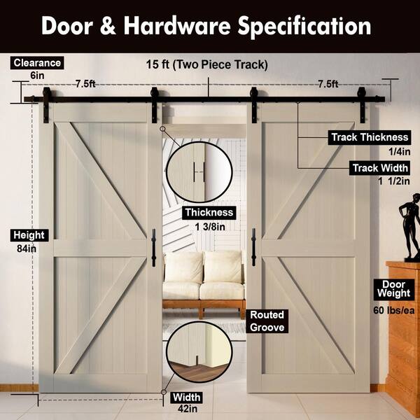 42 in. x 84 in. K-Frame Tinsmith Gray Double Pine Wood Interior Sliding Barn Door with Hardware Kit, Non-Bypass