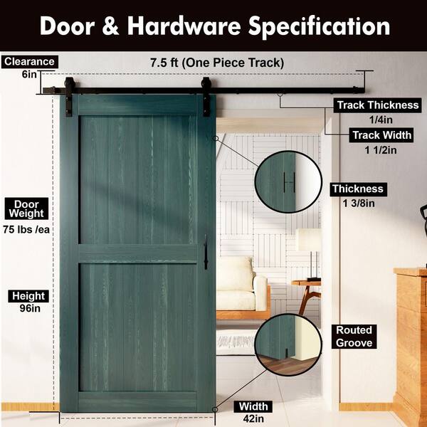 42 in. x 96 in. H-Frame Royal Pine Solid Pine Wood Interior Sliding Barn Door with Hardware Kit, Non-Bypass