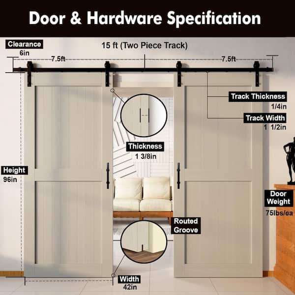 42 in. x 96 in. H-Frame Tinsmith Gray Double Pine Wood Interior Sliding Barn Door with Hardware Kit, Non-Bypass
