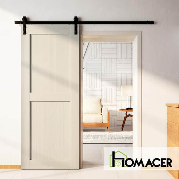 42 in. x 96 in. H-Frame Tinsmith Gray Solid Natural Pine Wood Panel Interior Sliding Barn Door Slab with Frame