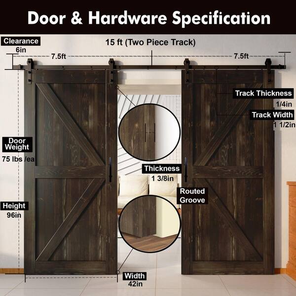 42 in. x 96 in. K-Frame Ebony Double Pine Wood Interior Sliding Barn Door with Hardware Kit, Non-Bypass