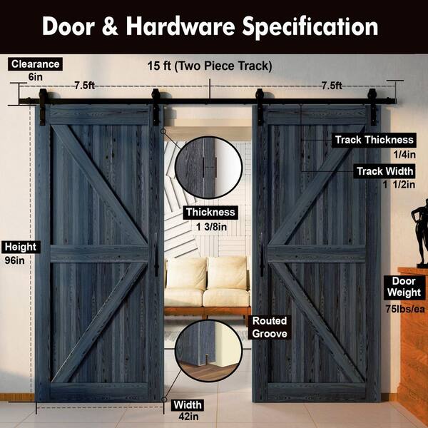 42 in. x 96 in. K-Frame Navy Double Pine Wood Interior Sliding Barn Door with Hardware Kit, Non-Bypass