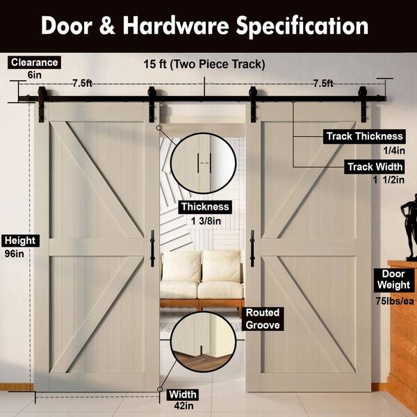 42 in. x 96 in. K-Frame Tinsmith Gray Double Pine Wood Interior Sliding Barn Door with Hardware Kit, Non-Bypass