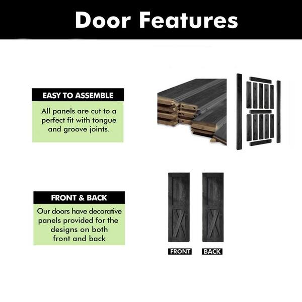 42 in. x 96 in. X-Frame Black Solid Natural Pine Wood Panel Interior Sliding Barn Door Slab with Frame
