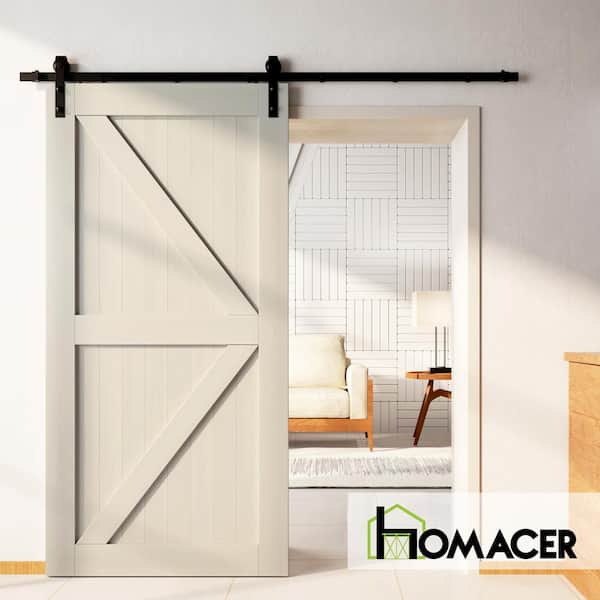 44 in. x 80 in. 5-in-1 Design Tinsmith Gray Solid Natural Pine Wood Panel Interior Sliding Barn Door Slab with Frame