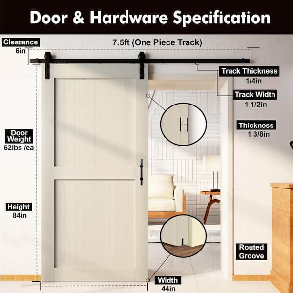 44 in. x 84 in. H-Frame Tinsmith Gray Solid Pine Wood Interior Sliding Barn Door with Hardware Kit Non-Bypass