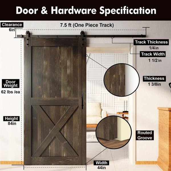 44 in. x 84 in. X-Frame Ebony Solid Pine Wood Interior Sliding Barn Door with Hardware Kit, Non-Bypass