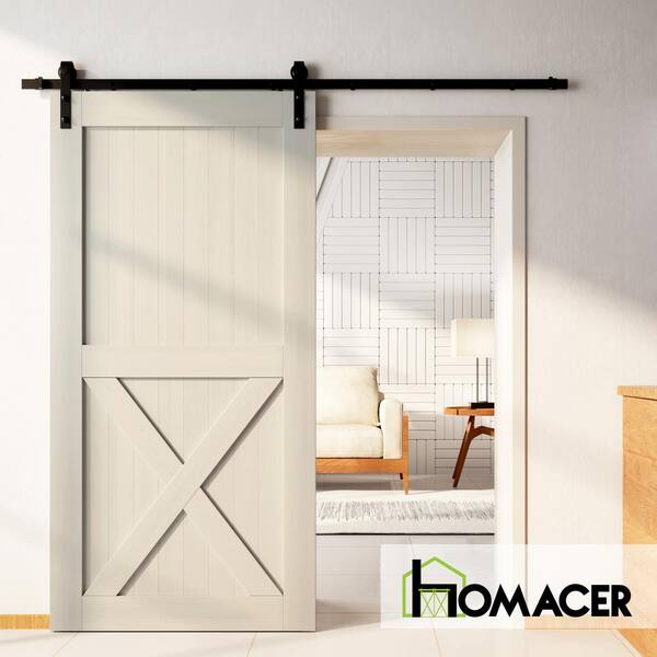 44 in. x 84 in. X-Frame Tinsmith Gray Solid Natural Pine Wood Panel Interior Sliding Barn Door Slab with Frame