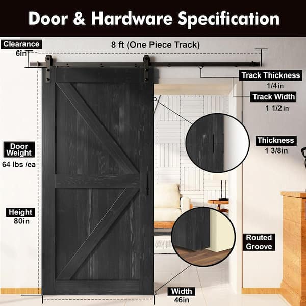 46 in. x 80 in. 5-in-1 Design Black Solid Pine Wood Interior Sliding Barn Door with Hardware Kit, Non-Bypass