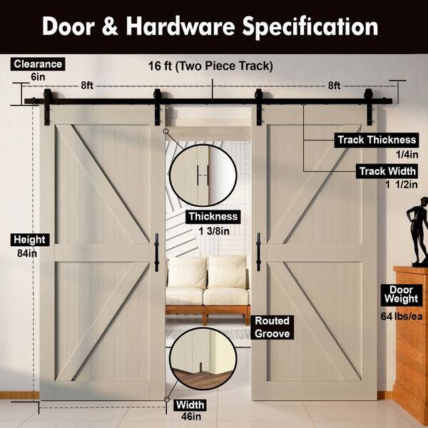 46 in. x 84 in. K-Frame Tinsmith Gray Double Pine Wood Interior Sliding Barn Door with Hardware Kit, Non-Bypass