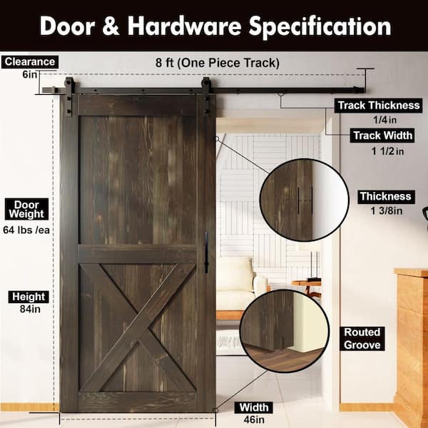 46 in. x 84 in. X-Frame Ebony Solid Pine Wood Interior Sliding Barn Door with Hardware Kit, Non-Bypass