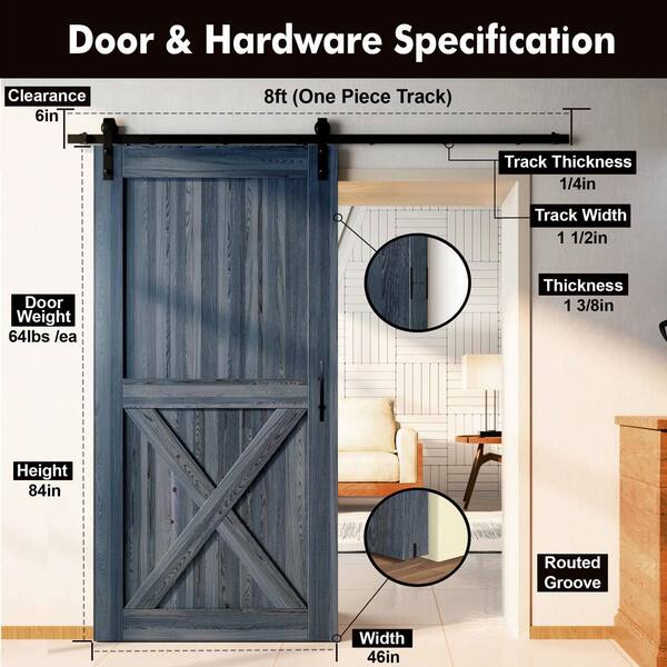 46 in. x 84 in. X-Frame Navy Solid Pine Wood Interior Sliding Barn Door with Hardware Kit, Non-Bypass