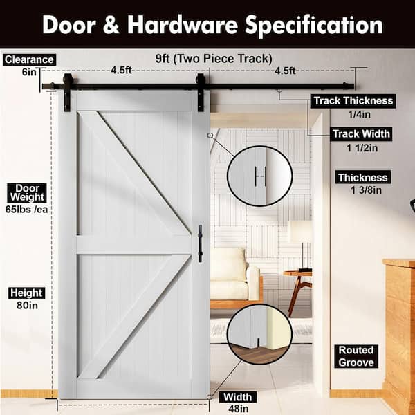48 in. x 80 in. 5-in-1 Design White Solid Pine Wood Interior Sliding Barn Door with Hardware Kit, Non-Bypass