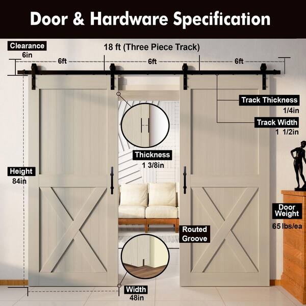 48 in. x 84 in. X-Frame Tinsmith Gray Double Pine Wood Interior Sliding Barn Door with Hardware Kit, Non-Bypass