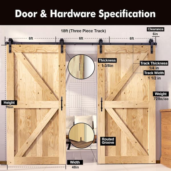 48 in. x 96 in. 5-in-1 Design Unfinished Frame Double Pine Wood Interior Sliding Barn Door with Hardware Kit, Non-Bypass