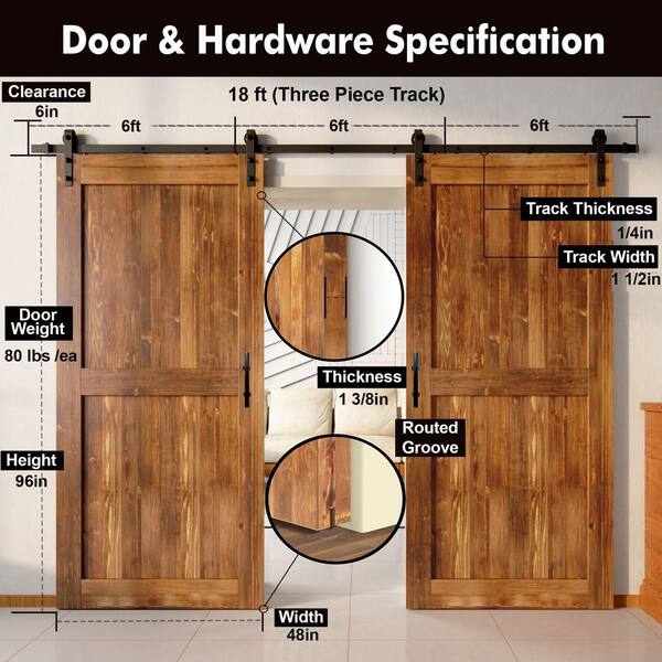 48 in. x 96 in. H-Frame Early American Double Pine Wood Interior Sliding Barn Door with Hardware Kit, Non-Bypass