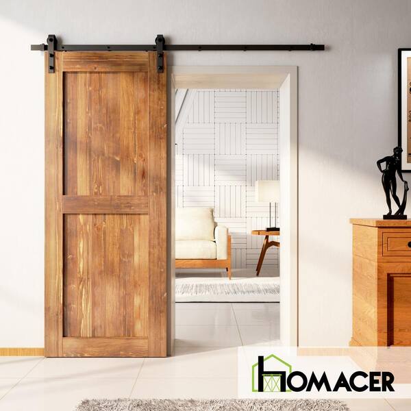 48 in. x 96 in. H-Frame Early American Solid Natural Pine Wood Panel Interior Sliding Barn Door Slab with Frame