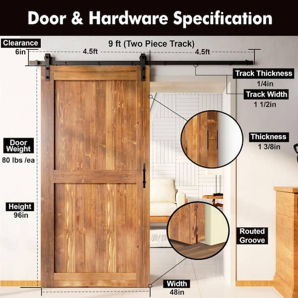 48 in. x 96 in. H-Frame Early American Solid Pine Wood Interior Sliding Barn Door with Hardware Kit, Non-Bypass