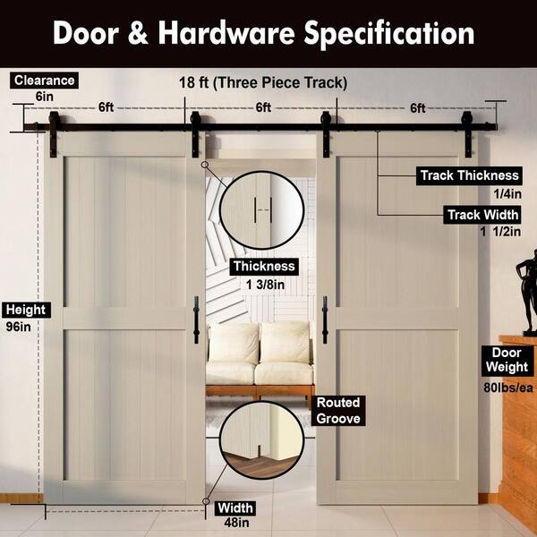 48 in. x 96 in. H-Frame Tinsmith Gray Double Pine Wood Interior Sliding Barn Door with Hardware Kit, Non-Bypass