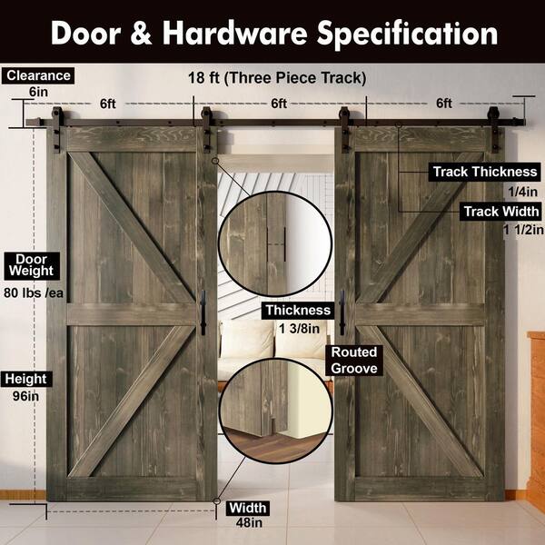 48 in. x 96 in. K-Frame Classic Gray Double Pine Wood Interior Sliding Barn Door with Hardware Kit, Non-Bypass