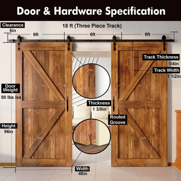 48 in. x 96 in. K-Frame Early American Double Pine Wood Interior Sliding Barn Door with Hardware Kit, Non-Bypass