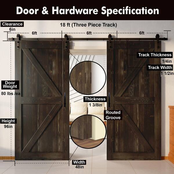 48 in. x 96 in. K-Frame Ebony Double Pine Wood Interior Sliding Barn Door with Hardware Kit, Non-Bypass