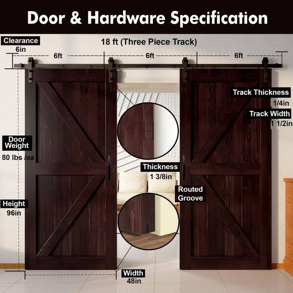 48 in. x 96 in. K-Frame Red Mahogany Double Pine Wood Interior Sliding Barn Door with Hardware Kit, Non-Bypass