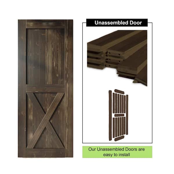 48 in. x 96 in. X-Frame Ebony Solid Natural Pine Wood Panel Interior Sliding Barn Door Slab with Frame