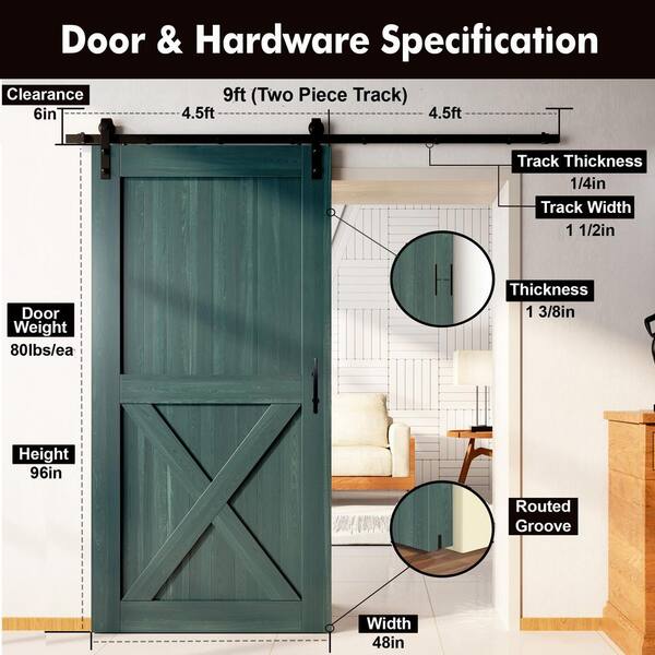 48 in. x 96 in. X-Frame Royal Pine Solid Pine Wood Interior Sliding Barn Door with Hardware Kit, Non-Bypass