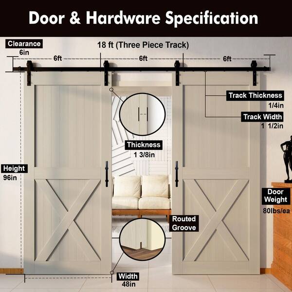 48 in. x 96 in. X-Frame Tinsmith Gray Double Pine Wood Interior Sliding Barn Door with Hardware Kit, Non-Bypass