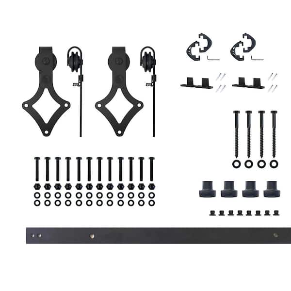 5.5 ft./66 in. Black Rustic Non-Bypass Sliding Barn Door Hardware Kit Diamond Design Roller for Double Doors