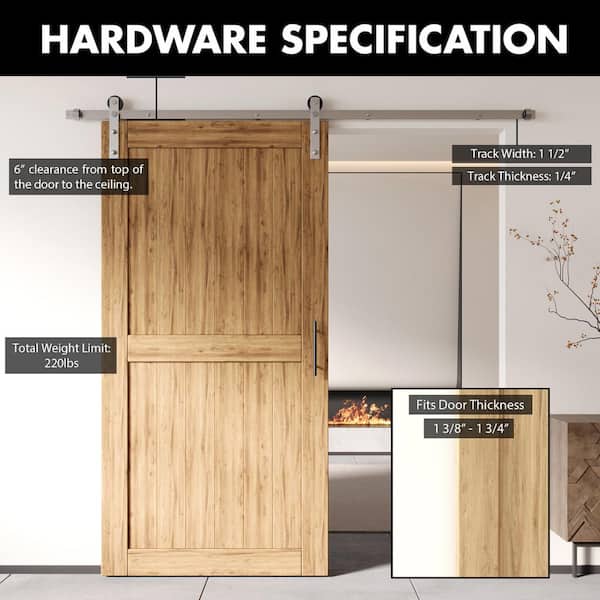 5.5 ft./66 in. Brushed Nickel Non-Bypass Sliding Barn Door Hardware Kit Straight Design Roller for Single Door