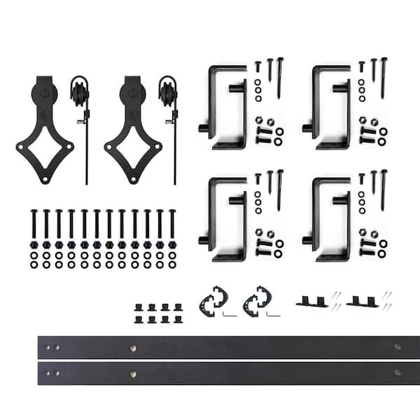 5 ft./60 in. Black Rustic Double Track Bypass U-Shape Sliding Barn Door Hardware Kit - Diamond Design Roller