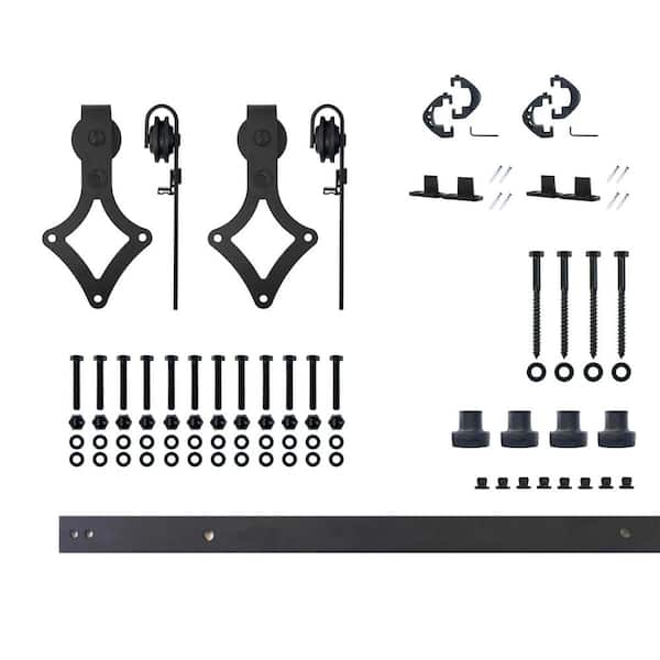 5 ft./60 in. Black Rustic Non-Bypass Sliding Barn Door Hardware Kit Diamond Design Roller for Double Doors