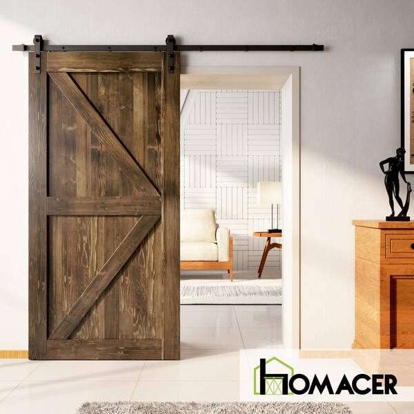54 in. x 80 in. 5-in-1 Design Walnut Solid Natural Pine Wood Panel Interior Sliding Barn Door Slab with Frame