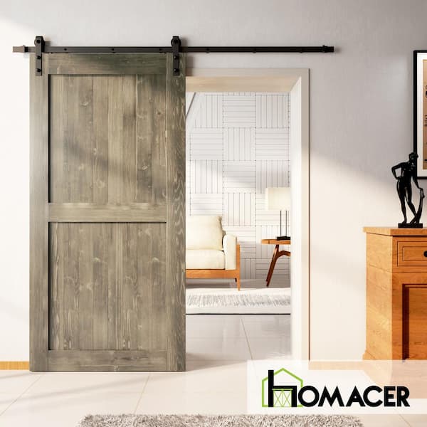 54 in. x 84 in. H-Frame Classic Gray Solid Natural Pine Wood Panel Interior Sliding Barn Door Slab with H-Frame