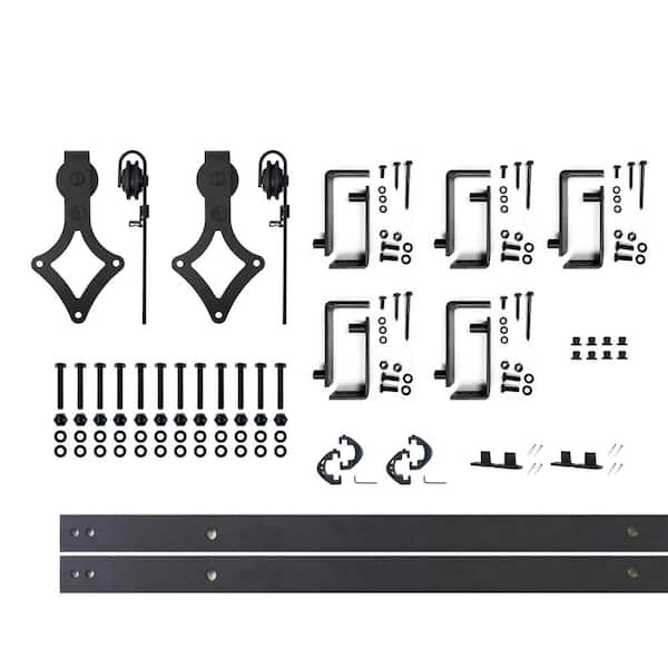 6 ft./72 in. Black Rustic Double Track Bypass U-Shape Sliding Barn Door Hardware Kit - Diamond Design Roller
