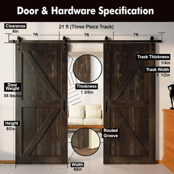 60 in. x 80 in. 5-in-1 Design Ebony Double Pine Wood Interior Sliding Barn Door with Hardware Kit, Non-Bypass
