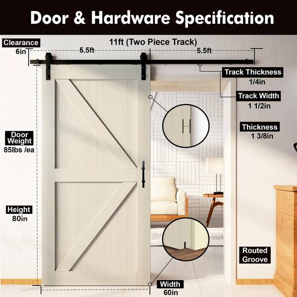 60 in. x 80 in. 5-in-1 Design Tinsmith Gray Solid Pine Wood Interior Sliding Barn Door with Hardware Kit, Non-Bypass