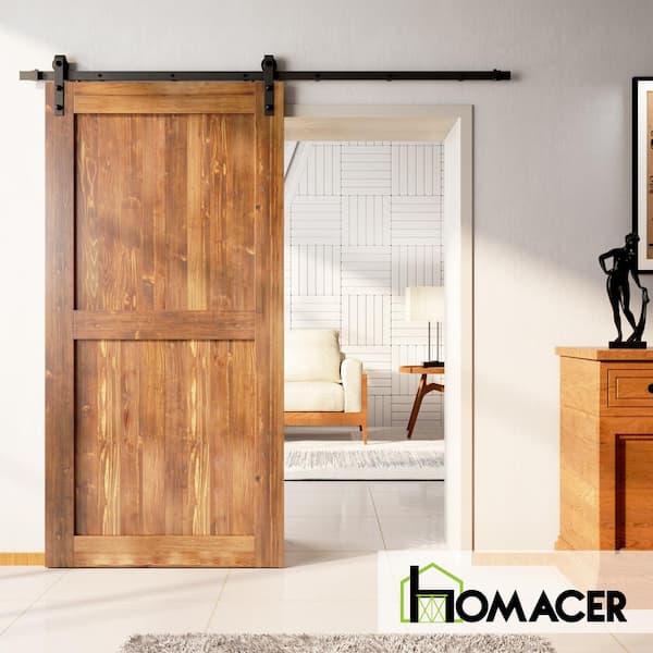 60 in. x 84 in. H-Frame Early American Solid Natural Pine Wood Panel Interior Sliding Barn Door Slab with Frame