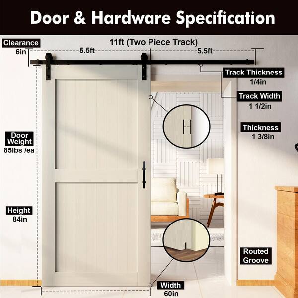 60 in. x 84 in. H-Frame Tinsmith Gray Solid Pine Wood Interior Sliding Barn Door with Hardware Kit Non-Bypass