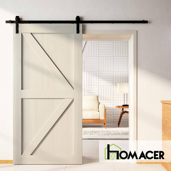 60 in. x 84 in. K-Frame Tinsmith Gray Solid Natural Pine Wood Panel Interior Sliding Barn Door Slab with Frame