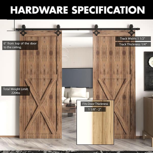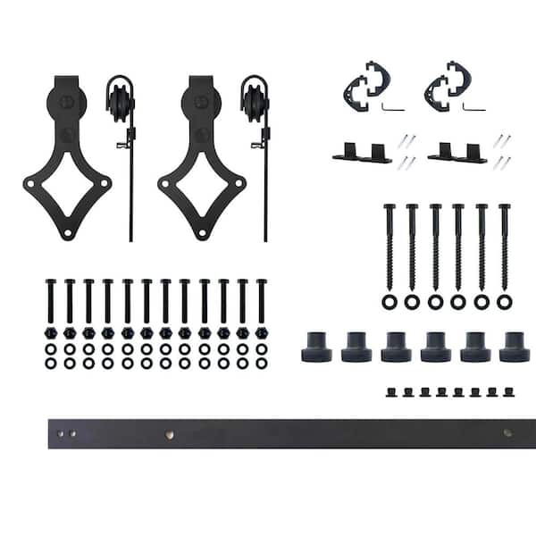 7.5 ft./90 in. Black Rustic Non-Bypass Sliding Barn Door Hardware Kit Diamond Design Roller for Double Doors