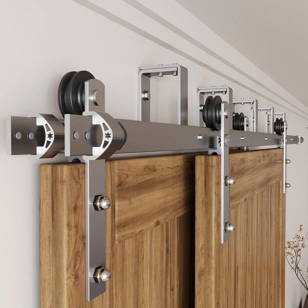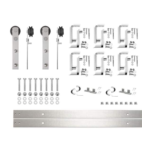 8 ft./96 in. Brushed Nickel Double Track Bypass U-Shape Sliding Barn Door Hardware Kit - Straight Design Roller